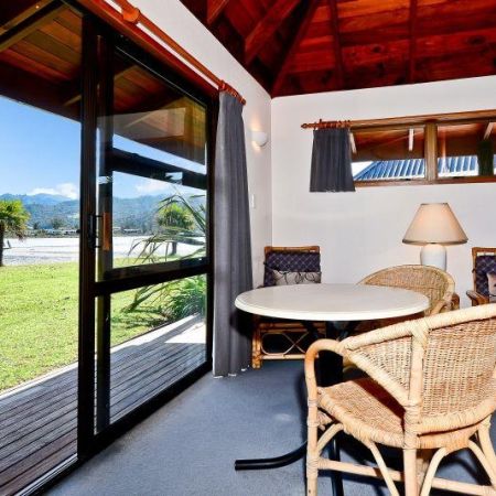 An der Ostküste der Coromandel-Halbinsel beim malerischen Ort Tairua (700 m), in Strandnähe. Tairua ist pittoresker Urlaubsort mit vielen Restaurants und Galerien. Vom Tairua Hafen kann man per Fähre zu anderen Orten (wie Pauanui) der Coromandel Peninsula gelangen. Zum berühmten Hot Water Beach sind es 20 Minuten. Die Fahrtzeit zum Flughafen Auckland beträgt gute 2 Stunden. Hotel: Chaletanlage inmitten tropischer Vegetation. Restaurant mit Café, kostenlose Parkplätze.