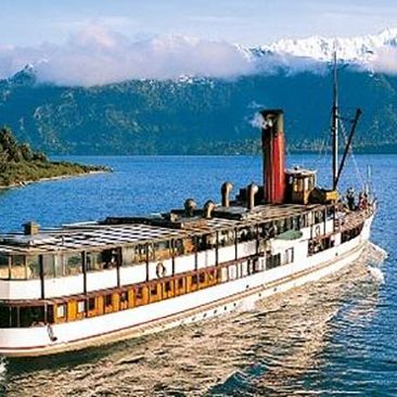 Unternehmen Sie eine romantische Bootsfahrt mit dem alten Dampfschiff „TSS Earnslaw“ auf dem Wakatipu See zur Walter Peak Farm.